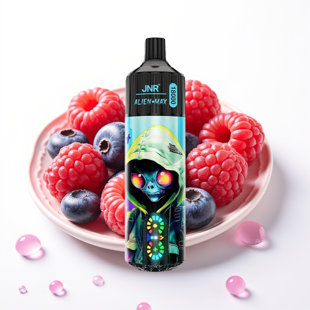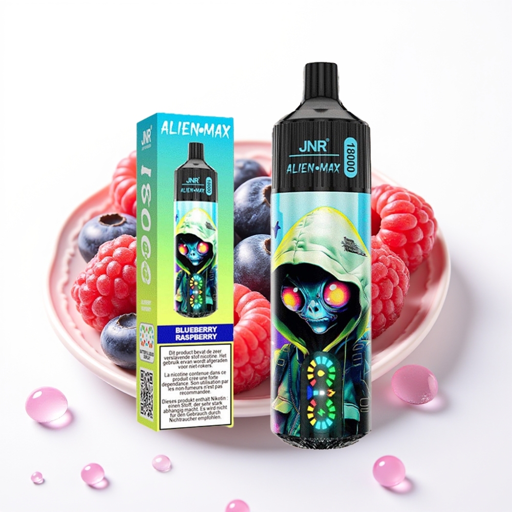 JNR Alien Max 18000 Puffs Vaporizador Descartável Mirtilo Framboesa com Display LED Inteligente, Bobina Dupla e Carga Rápida Type-C