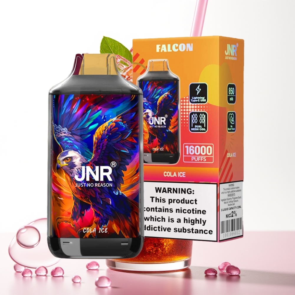 JNR Falcon 16000 Puffs Vape Descansável Cola Gelada com Bateria 850mAh, 22ml, Dual Mesh Coil