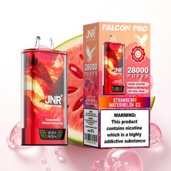 JNR Falcon Pro 28000 Recarregável com Tela Inteligente, Bobina Dupla Mesh, Sabor Morango Melancia Gelo, 30ml, 5% Nicotina