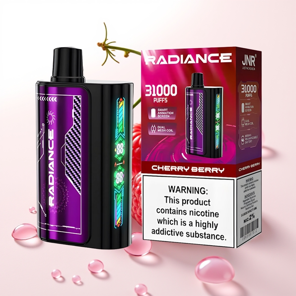 JNR Radiance 31000 Puffs Recarregável Tela Inteligente Dual Mesh Sabor Cereja & Frutas Vermelhas