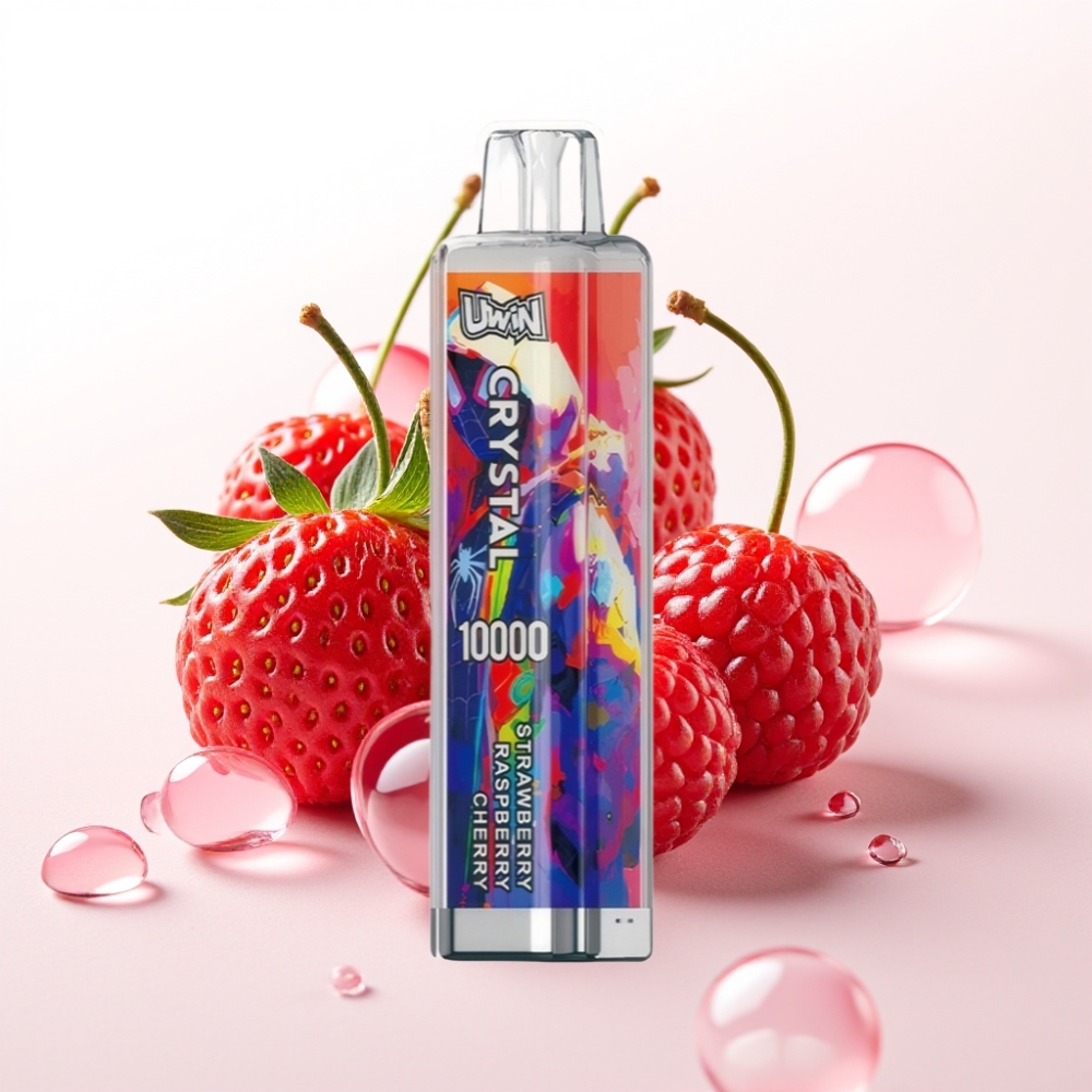UWIN Crystal 10000 Puffs Recarregável com Luzes RGB Sabor Morango Framboesa Cereja