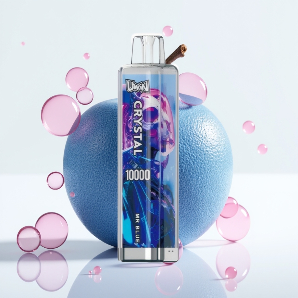 UWIN Crystal 10000 Puffs Vape Recarregável Sabor Azul Mr Blue 0-5% Nicotina 18ml RGB