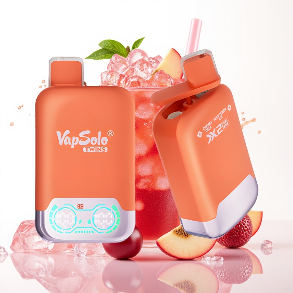 Vapsolo Twins 20000 Puffs Vape Descartável Cherry Cola & Juicy Peach Ice, 40ml, 20mg/ml/50mg/ml, Tipo-C